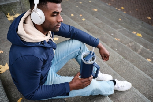Meet Peakflow, the ultimate 1200ml tumbler designed for those who need a little extra. Its comfort-grip handle and slim base make it easy to carry and fit into most cup holders, keeping you hydrated on the go. Outside made from durable recycled stainless steel, Peakflow’s double-walled, vacuum-insulated body keeps drinks at the perfect temperature. It features a spill-proof lid with a dual function for sipping or using the included recycled plastic straw. RCS-certified, with 29% recycled content, and BPA-free. Perfectly practical and lower impact, we recommend handwashing. Bulk packed.